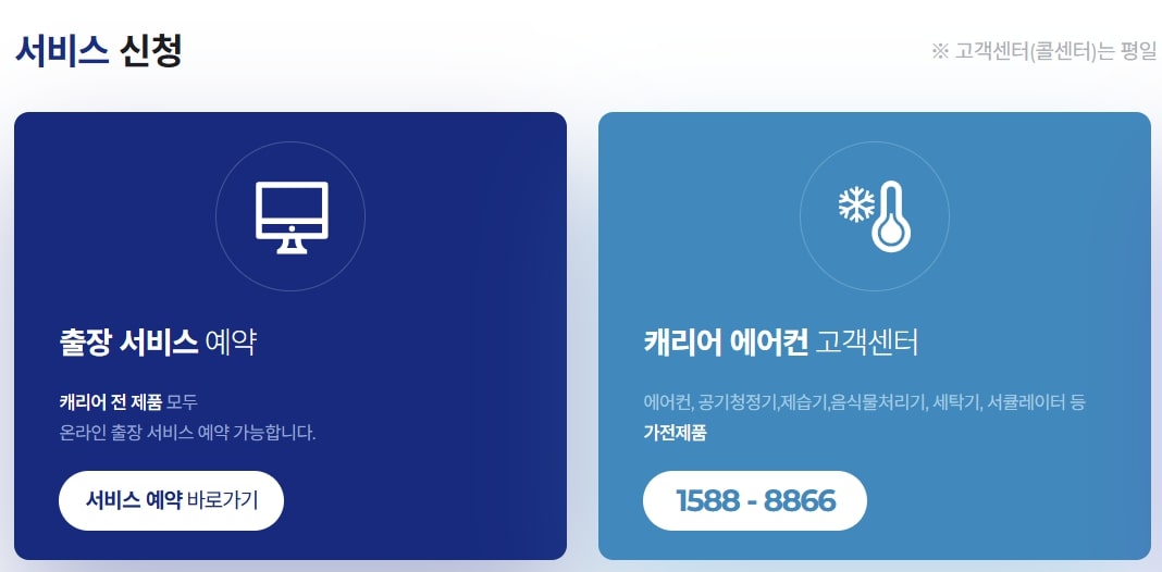 A. 캐리어 고객센터(1588-8866) 전화 또는 공식 홈페이지(carriermall.co.kr)에서 신청 가능합니다.