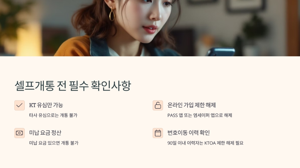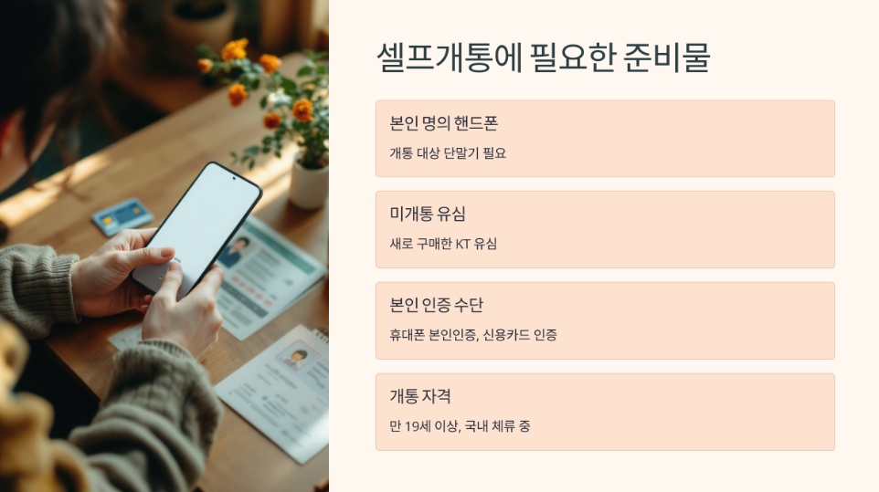 KT USIM 셀프개통 방법과 준비물, 주의사항까지 한눈에 정리했습니다. 유심 구매부터 개통까지 혼자서 간편하게 해결하세요.