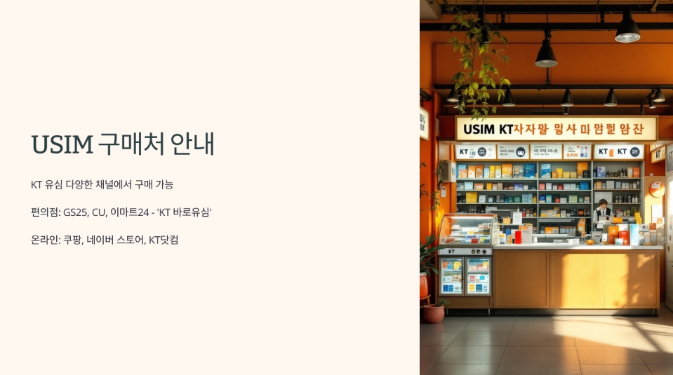 - 편의점: GS25, CU, 이마트24 – 'KT 바로유심' 구매 가능