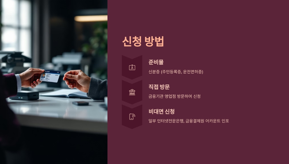 | 신청 방법 | 금융기관 영업점 방문 또는 일부 비대면 신청 |