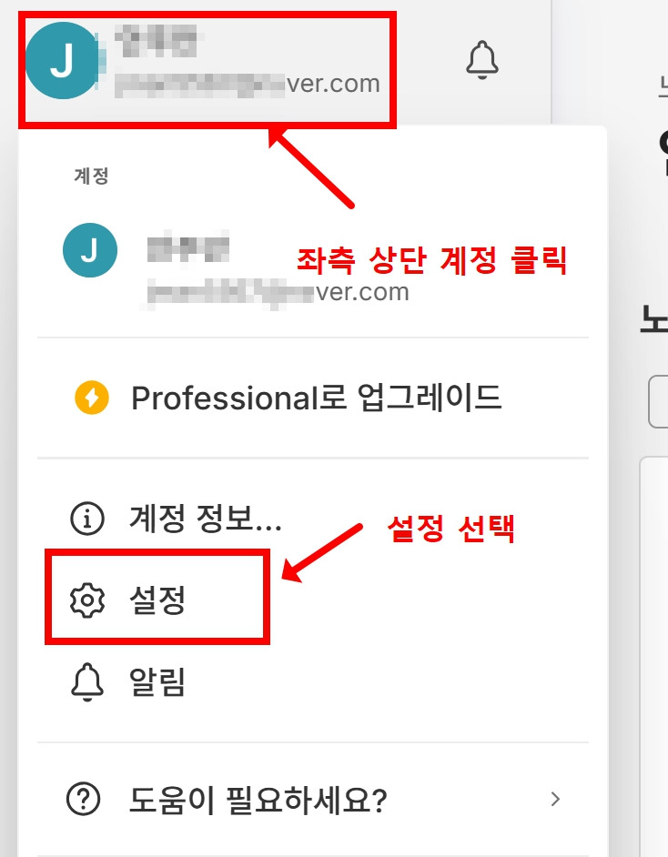 📖 1단계: 계정 메뉴에서 ‘설정’ 선택하기