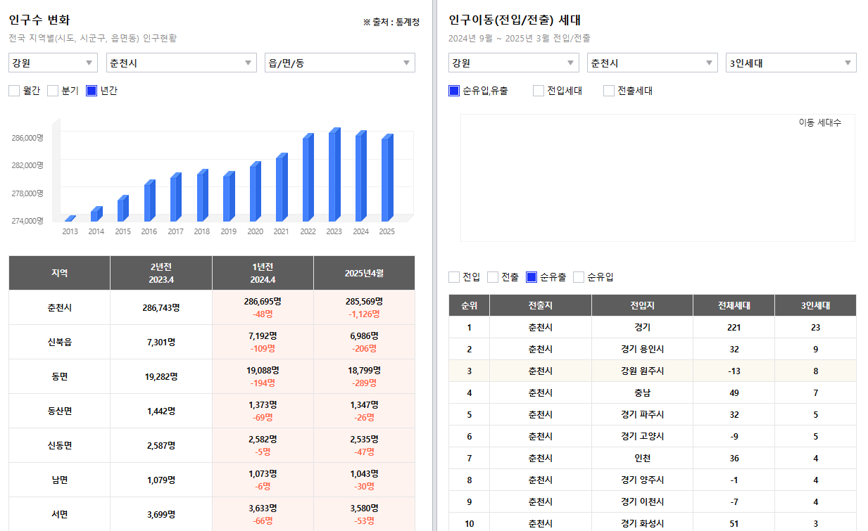 -강원대학교 춘천캠퍼스 학생들 이주수요 때문인지.....거래량이 매우 활발한 편.