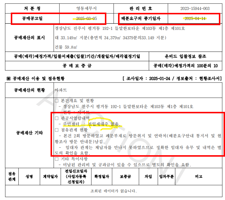 2)인수할 금액 : 영동세무서 법정기일이 2022.11.20.~vs.전세권2023.7.31 =>확인 필요. 인수금액 있을 수 있음.